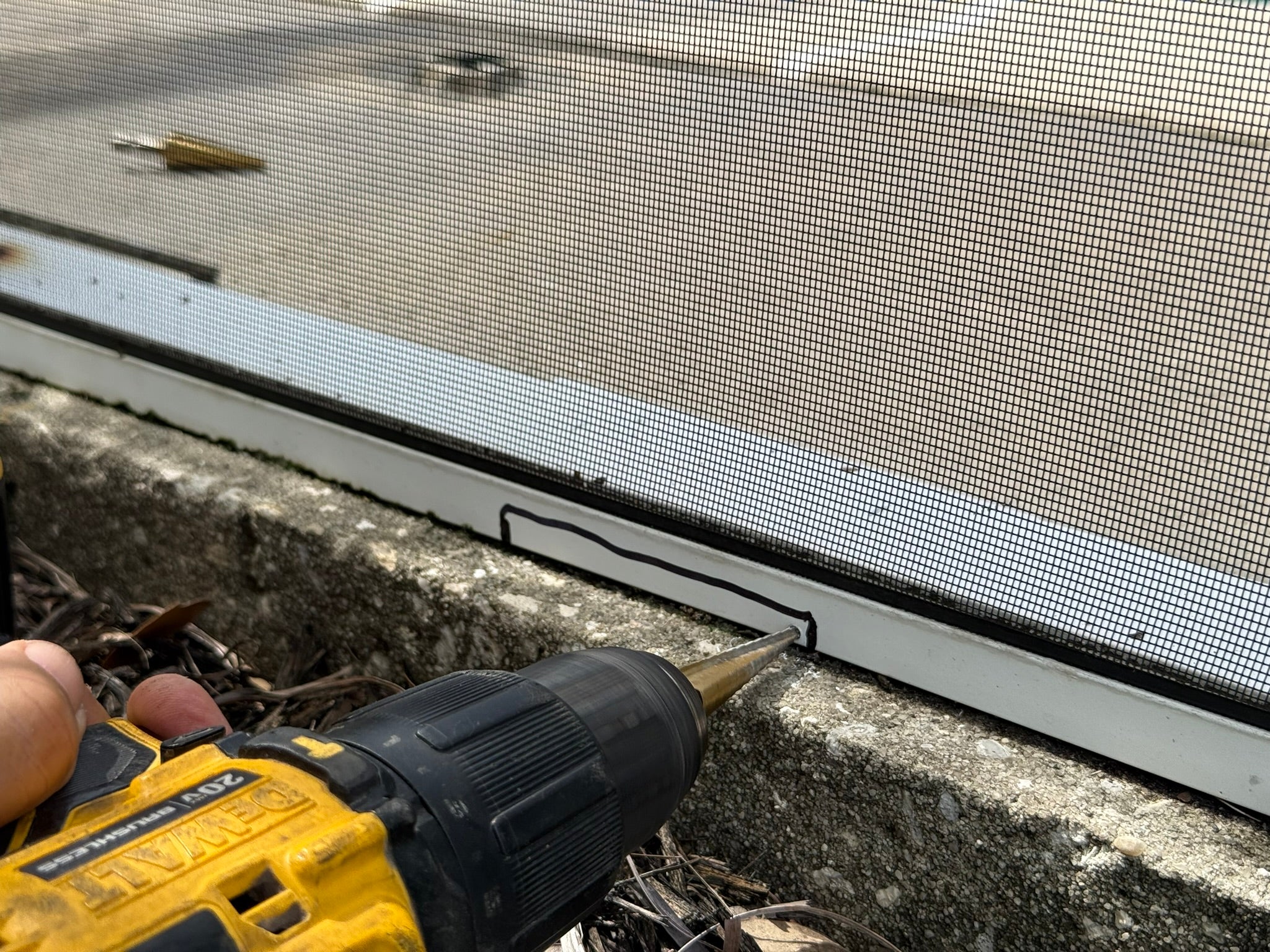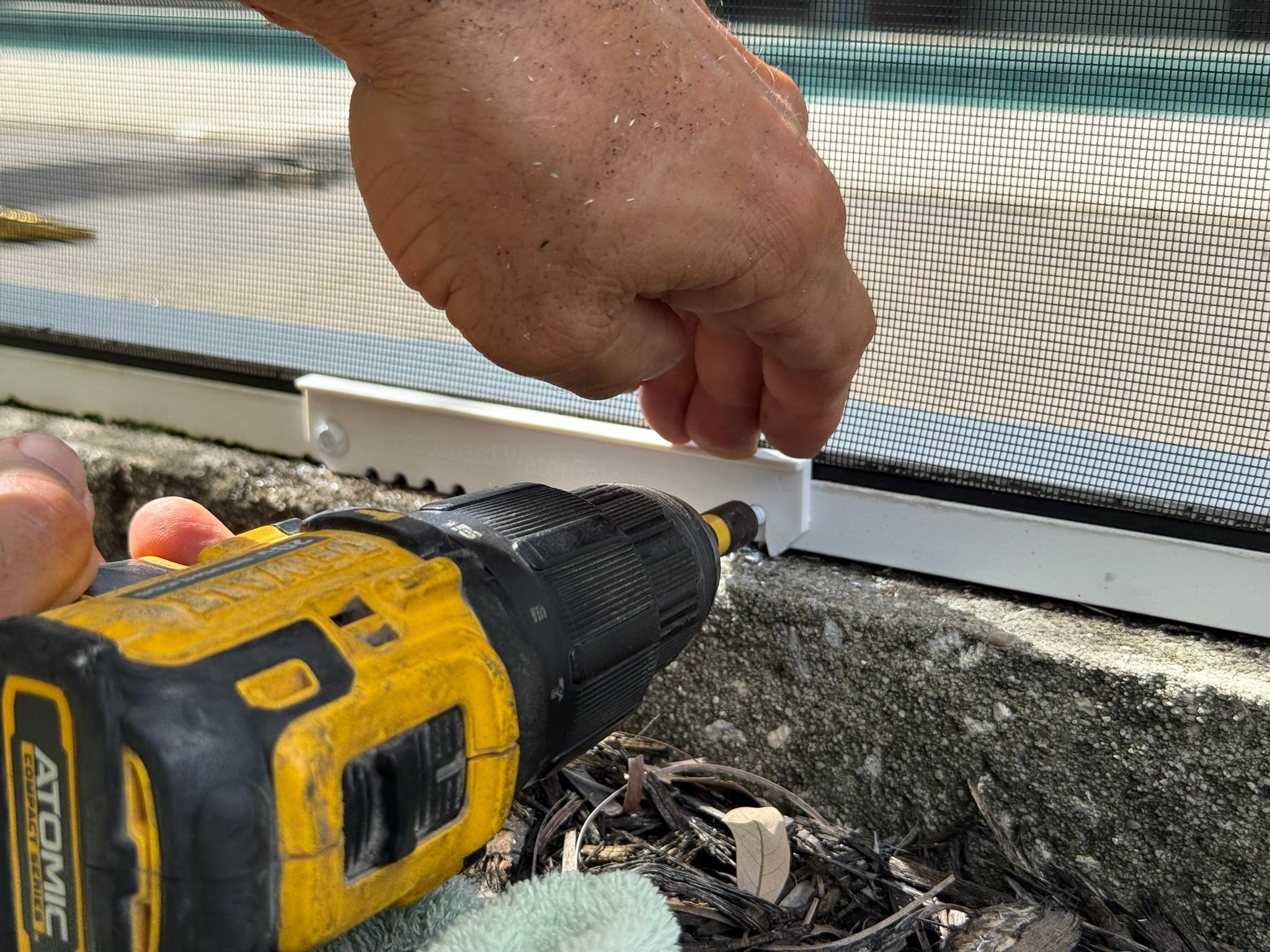Then drill right screw in, do not overtighten so the gate can pivot.